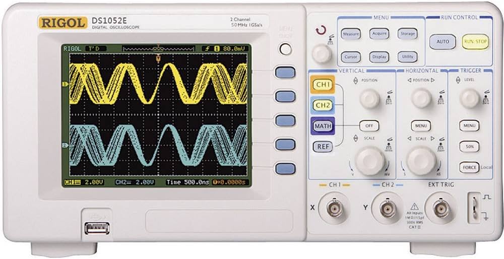 - Un oscilloscope, qui va nous permettre de visualiser des signaux et d’effectuer des mesures sur ces derniers (amplitude crête, rapport cyclique…)